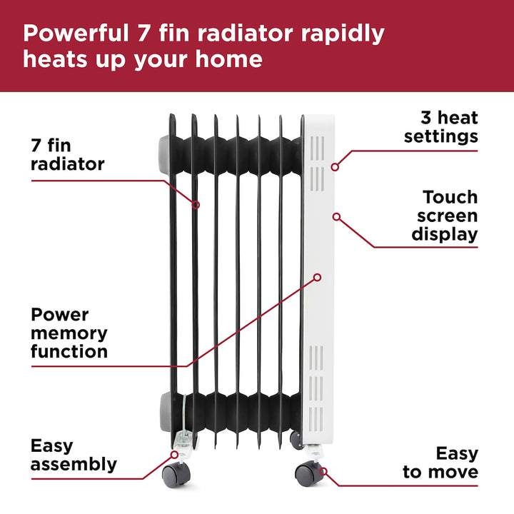 Perfect for cold, winter days, this BLACK+DECKER oil filled radiator is the ideal choice to heat up your home. Offering a choice of three heat settings, 600W, 900W and 1500W,...