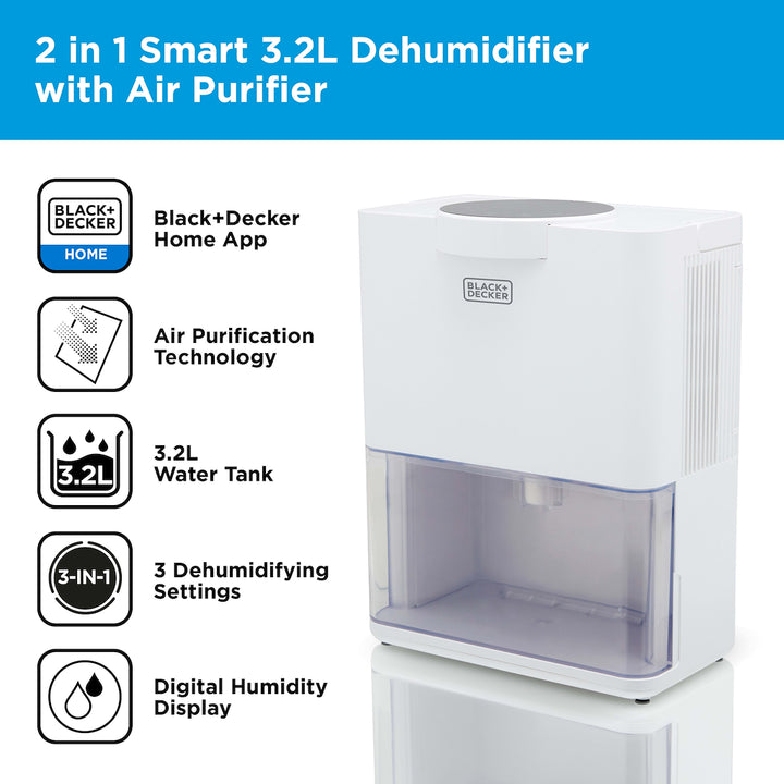 Black & Decker BXEH60013GB 2 in 1 3.2L Smart Dehumidifier with Air Purifier