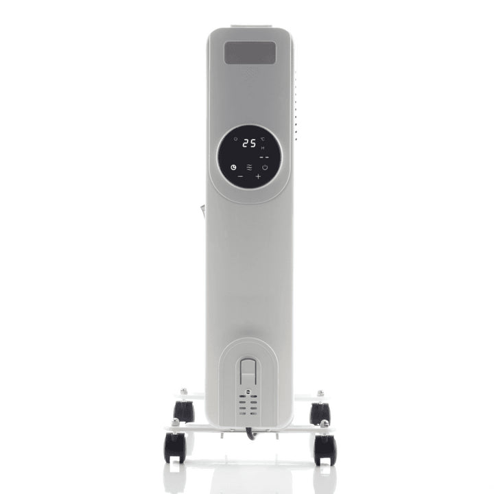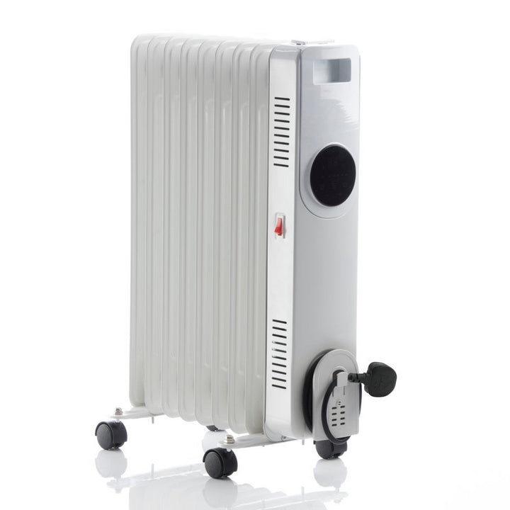 Introducing the 2000W Oil Filled Radiator with LCD Display. Featuring a power indicator light, adjustable thermostat, and overheat protection for safety, this radiator also includes a safety tip-over switch and smooth castors for easy mobility.