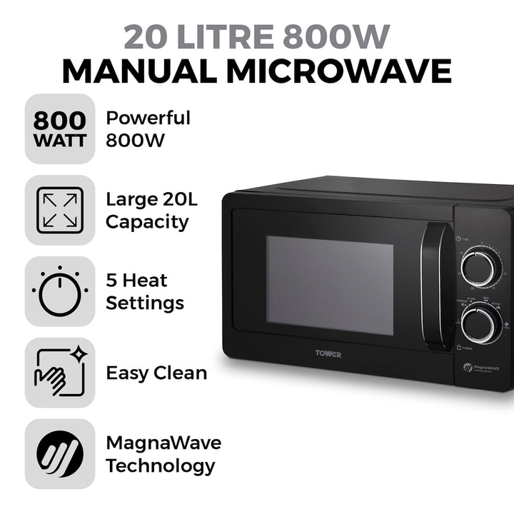 Tower T24042BLK 20L 800W Manual Microwave - Black