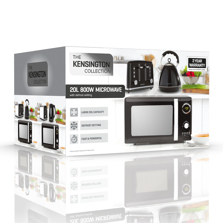 Daewoo Kensington 20L Digital Microwave | 5 Power Settings | Defrost & Cancel Control | 245mm Turntable Glass Tray | Digital Timer | Beep Indicator | 800W/220-240V/50Hz - Black [Energy Class A]