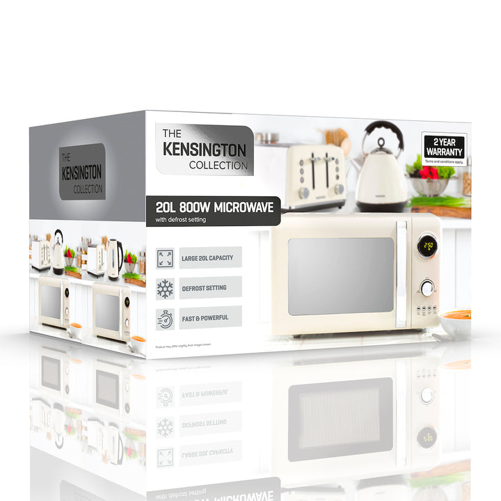 Kensington 20L Digital Microwave, 5 Power Settings with Defrost & Cancel Control, 245mm Turntable Glass Tray, Digital Timer, Beep Indicator, 800W/220-240V/50Hz - Cream SDA1654