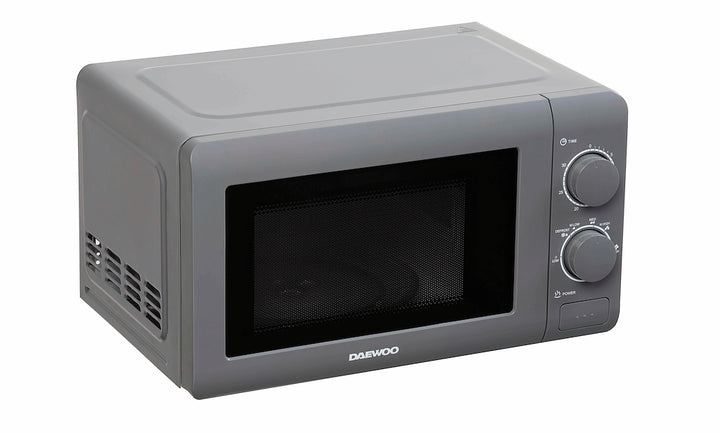 Daewoo 20L Manual Microwave wit 5 Power Settings and 30 Minute Timer, Cooking End Signal and Defrost Function, Cool Grey Housing with Push Button Door and White Interior, 220-240v, 50hz 800w- Grey