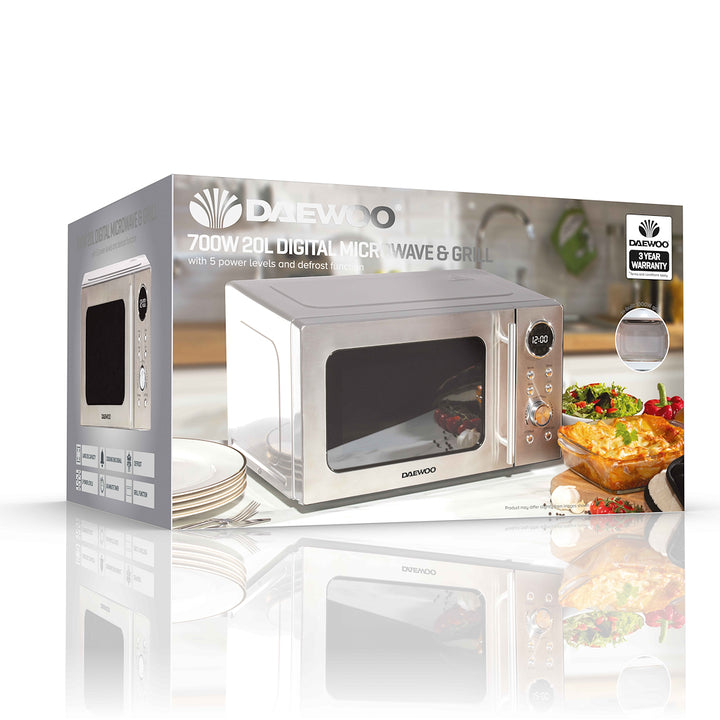 Daewoo SDA2071GE 20L Silver 700W Microwave with Grill - KOR3000SL