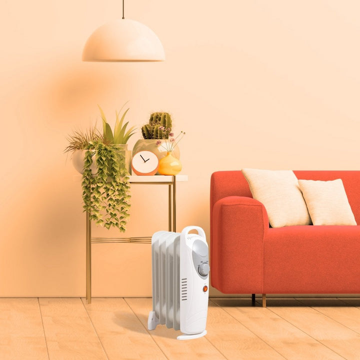 Introducing the 650W Mini Oil Filled Radiator, perfect for small-sized rooms. With thermostat control from low to high, this portable and compact radiator features a power indicator light and a built-in handle for easy portability.