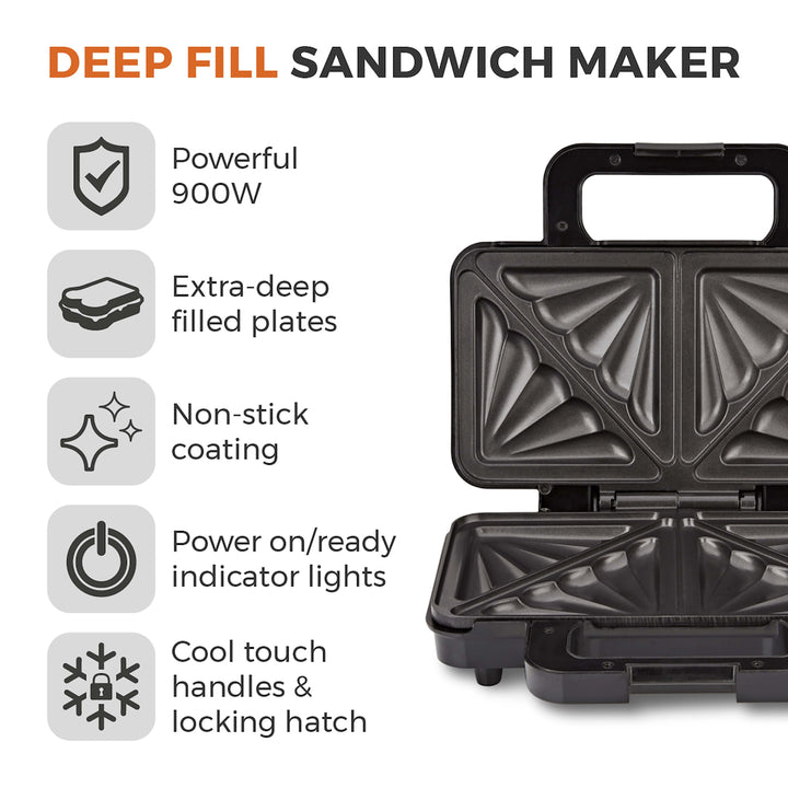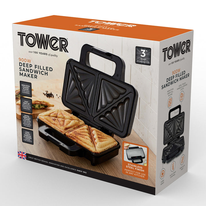 Tower T27031 900W Deep Filled Sandwich Maker - Stainless Steel