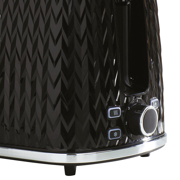 Daewoo Argyle 2 Slice Patterned Toaster | Reheat, Defrost & Cancel Controls | Electronic Browning Feature | Removable Crumb Tray | Anti-Jam Function | Self-Centering | 220-240V/50-60Hz/780-930W - Black