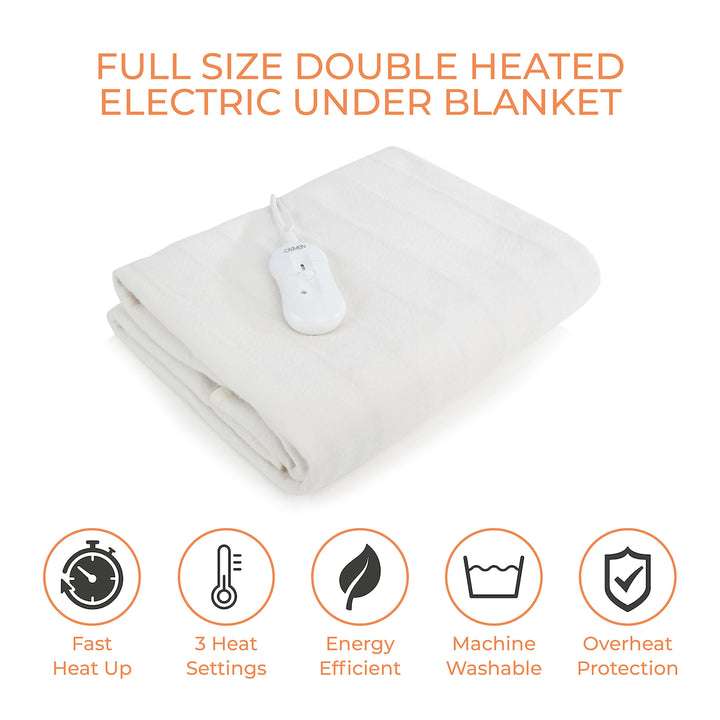 Enjoy extra warmth and cosiness all night long with the Carmen Full Size Double Heated Under Blanket made from 450gsm polyester soft to touch fabric. With a powerful 70W output...