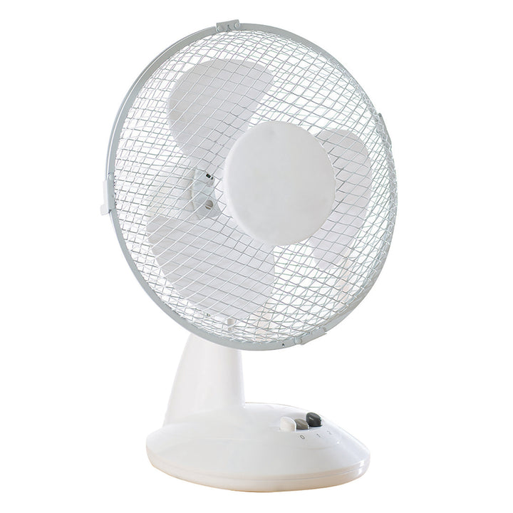 This Daewoo 9-inch desk fan is ideal for using at home or in the office. It's portable enough to sit on a desk or table, and can be moved wherever you need it. It's compact and lightweight, with 2 speed settings, and an oscillating head, giving a fresh breeze at the switch of a button.