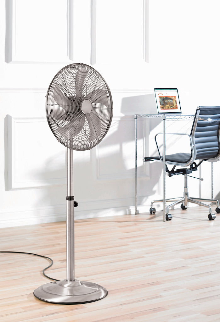 The 16-inch chrome pedestal fan offers efficient cooling with three adjustable speed settings, providing flexibility to suit your comfort preferences. Its adjustable height and tilt feature, along with a 90-degree oscillation function, ensure widespread and customizable airflow. The anti-slip chrome base with rubber contributes to stable placement, and the fan is easy to assemble for quick use. The integrated carry handle enhances portability, and the topple-resistant base adds an extra layer of safety, making this pedestal fan a convenient and reliable cooling solution for various spaces.
