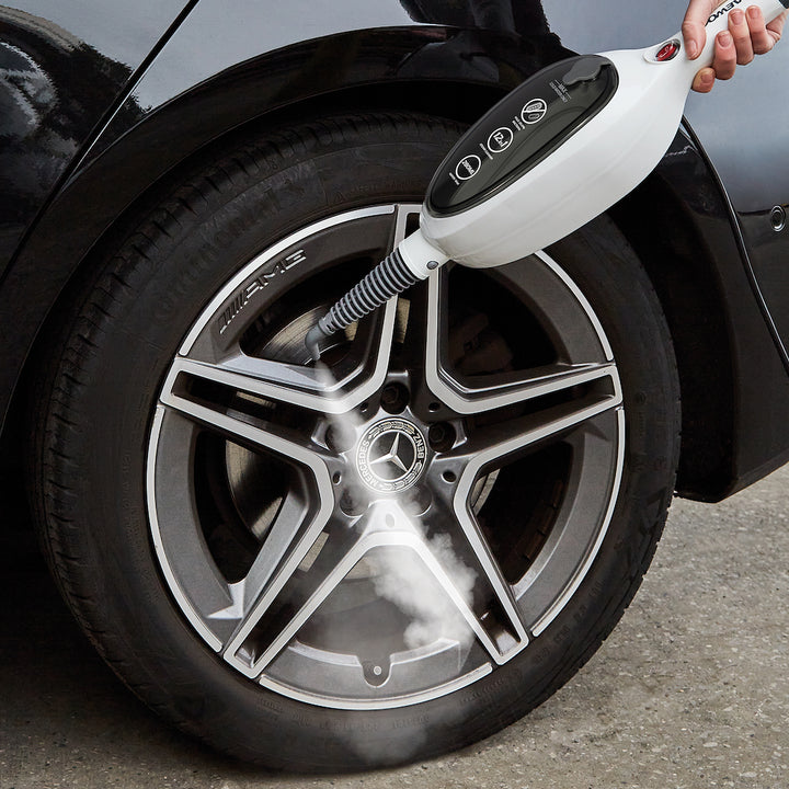 This powerful steam cleaner makes cleaning kitchen taps, surfaces, and hobs easy. It kills 99.9% of germs and bacteria and comes with interchangeable heads for deep cleaning. The cleaner has a built-in clipper vacuum, a 280ml easy-fill water tank, and can switch from carpets to hard floors. It also includes a 2-in-1 paw/upholstery brush for cleaning car seats, alloys, rugs, and more.
