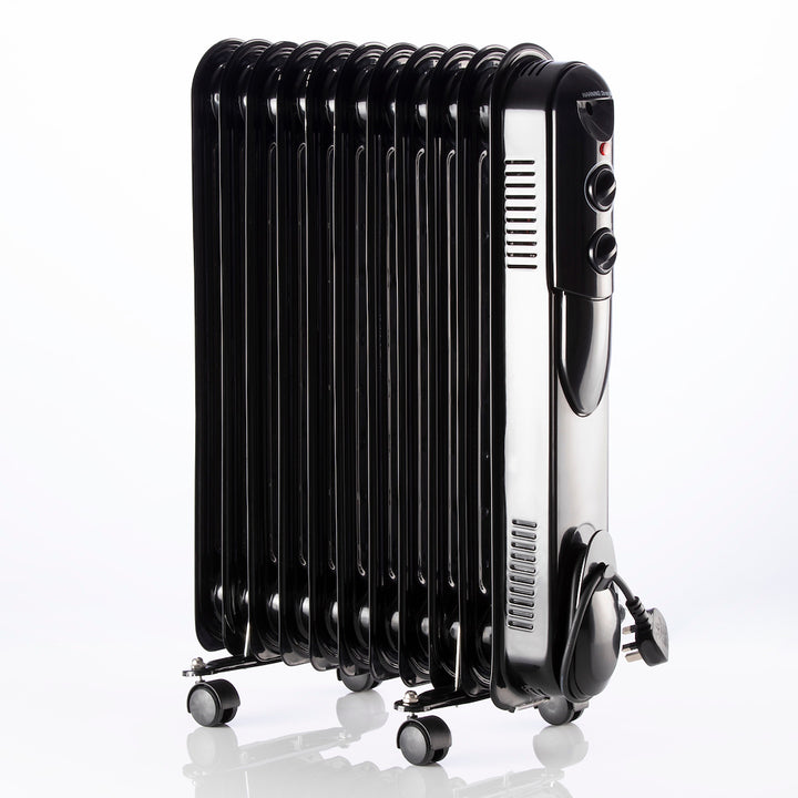 The Daewoo 11-fin oil filled radiator is simple to use thanks to its dial controls to adjust the heater's temperature. Set on 4 castor wheels the heater is portable so you can position it where you need it most. The radiator also features a tip-over switch, overheat protection, and an LED indicator light to ensure safety and guard against accidents