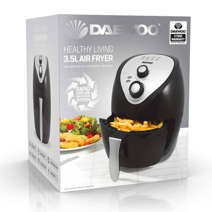 Daewoo Healthy Living SDA1553 Family 3.6L Oil Free 1400W Fast Frying Fryer with Rapid Air Flow Circulation, -Black, Silver