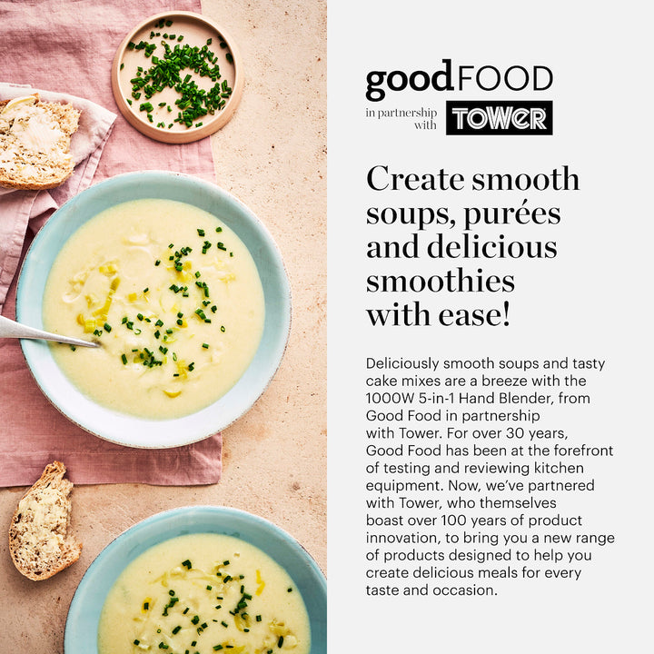 This powerful Digital Hand Blender from Good Food by Tower is perfect for creating delicious soups, smooth batters and thick sauces for the whole family to enjoy. Complete with 5...