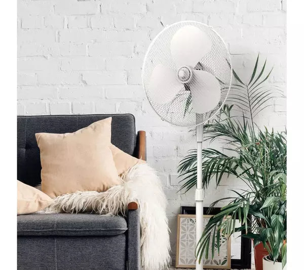 16 Inch Pedestal Fan in White. This powerful 16 inch white pedestal fan that will maximise the airflow in any room, without making a big noise about it. The adjustable tilt angle and height mean you can tailor the air output to your needs to achieve the perfect atmosphere.