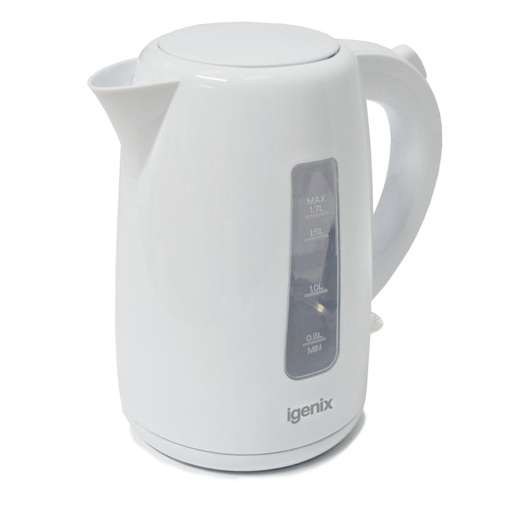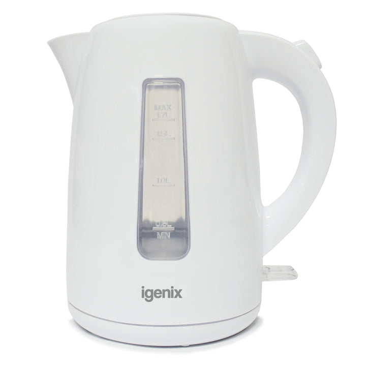 This Igenix IG7105 1.7 litre white cordless kettle is a staple of any kitchen, with a rapid boil function meaning you don t have to wait as long to make your perfect cup. The large blue illuminated water window means you ll never overfill the kettle again, and the removable, washable filter helps you achieve the perfect cuppa every time.