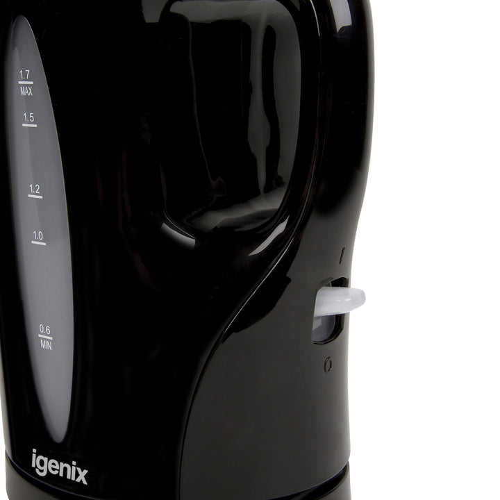 The Igenix IG7280 Black Kettle is traditionally styled and has been built with practicality in mind. Ideal kettle for a first time buyer, bed and breakfast or hotel. Features include a 2.2KW immersed element, 1.7 Litre capacity, a safety locking lid and a removable and washable limescale filter. For additional safety, the kettle also offers boil-dry protection and cord storage.