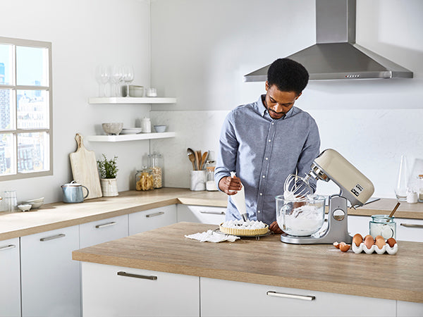 You're always prepared with a set of three sturdy tools. Every kMix comes with a whisk, dough hook and our signature K-Beater – a true baking all-rounder. Serve up delicious cakes and breads in no time.