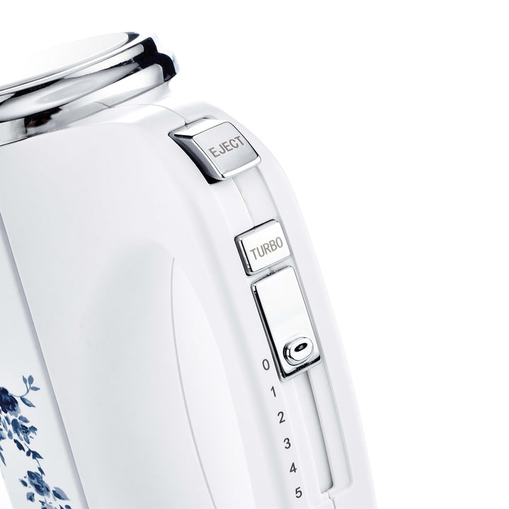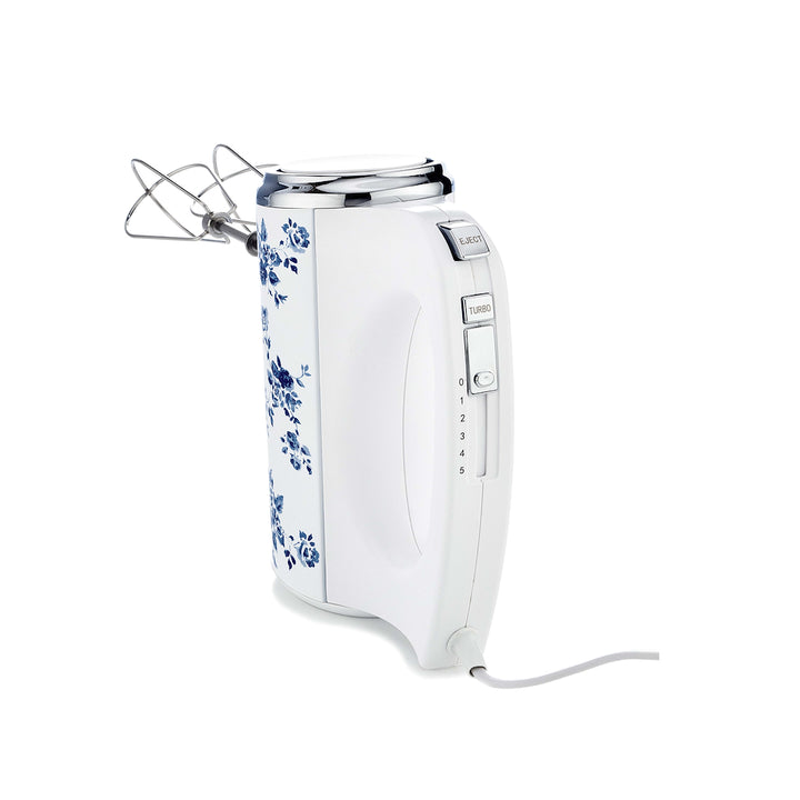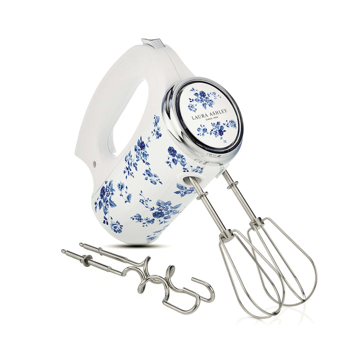 Become a star baker with this Hand mixer from Laura Ashley. The 300W output ensures rapid and efficient baking 5 individual speed settings that will let you create mixtures with smooth and delicate textures. It comes with 2 stainless steel hooks that are perfect for mixing and kneading dough, whilst the 2 stainless steel beaters will expertly blend eggs and cream to create effortlessly smooth batters. The stylish china rose patterned design ensures this hand mixer draws the eye and complements any kitchen decor with ease.