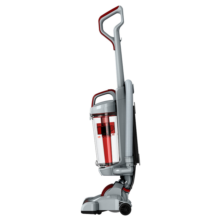 Ewbank's EW3001 700W Bagless Pet Upright Vacuum in Silver/Red with easy handling with air swivel technology equipped with a single cyclone filtration system, HEPA filter, 3-in-1 crevice tool and pet turbo brush. Handy on-board tool storage that is ideal for cleaning both carpets and hard floors.