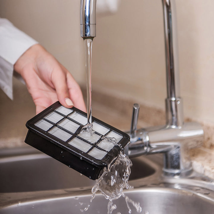 Storage space is kept to a minimum for the MOTION2 Pet Cylinder, thanks to its retractable power cord and telescopic tube, and the H12 HEPA filter that helps catch finer particles and hair is washable, saving money on replacement filters.