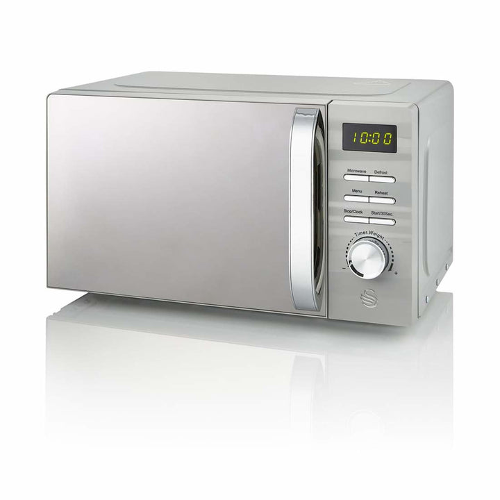 Cook meals at the touch of a button with this Swan Symphony SM22038LBN 20L black digital microwave. It features 5 power levels and a 60-minute timer for cooking a ready meal or reheating leftovers. Defrost cooks meals straight from frozen. Features a 255mm high quality glass turntable that holds standard sized dinner plates. Swan Symphony is an elegant and timeless collection that blends delicate textures with a high gloss and matt finish.
