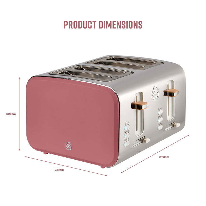 Start your morning off right with a delicious breakfast using the Swan Nordic ST14620FUS fuchsia rose 4-slice toaster. Whether it's toast, muffins, crumpets or bagels, get perfect results customised to...