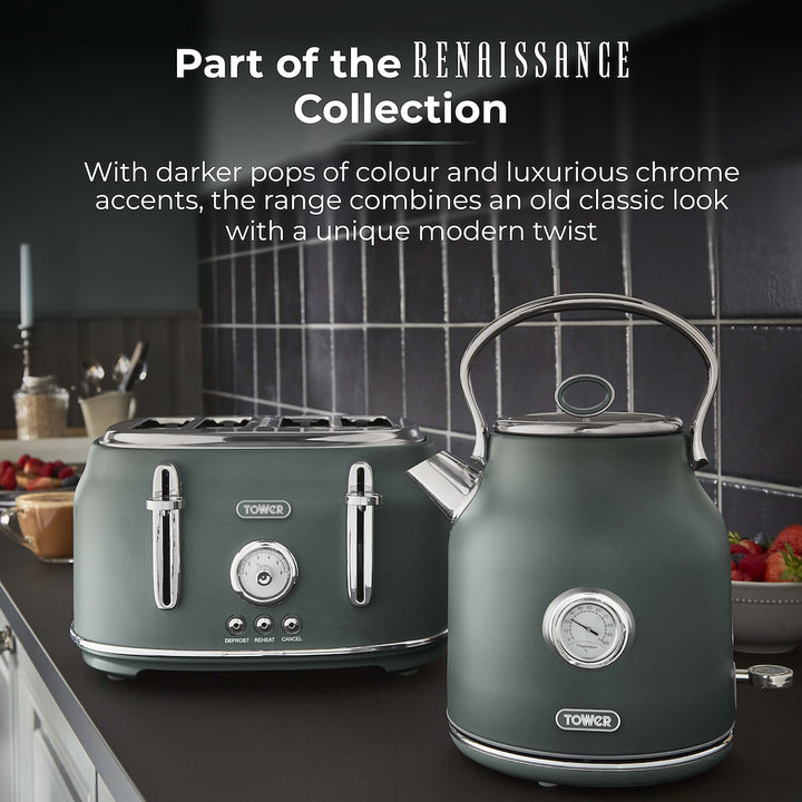 Boil the perfect brew in less than a minute with the Tower Renaissance 3KW Forest Green Kettle. The 1.7L capacity lets you make up to 7 cups of tea or...