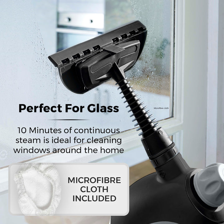 Keep germs at bay with this corded handheld steam cleaner from Tower. Heating up in just 3 minutes, the powerful cleaner uses steam temperatures up to 105 degrees to eliminate grease, grime and bacteria, offering up to 10 minutes of continuous steam cleaning for keeping your upholstery germ-free. The handheld steam cleaner's lightweight design ensures comfortable operation, complete with a lengthy 3 metre power cord for added freedom when cleaning around each room. There are 9 accessories included with an extension hose, fabric steaming tool, microfiber cloth, long nozzle attachment, nylon brush, squeegee, angled nozzle, funnel and a measuring cup to expand your cleaning arsenal.