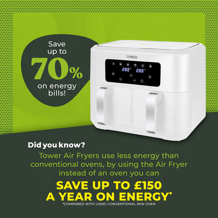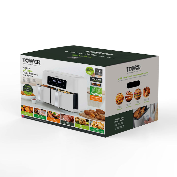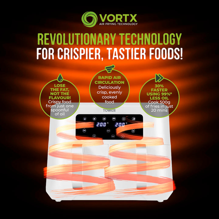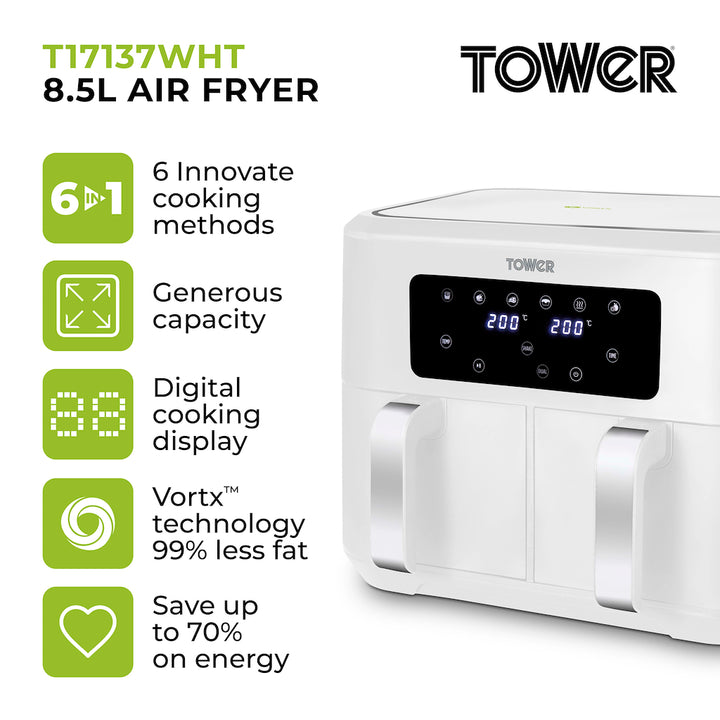 Tower T17137WHT Vortx 8.5L Dual Basket Air Fryer Digital - White