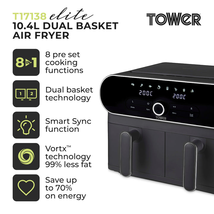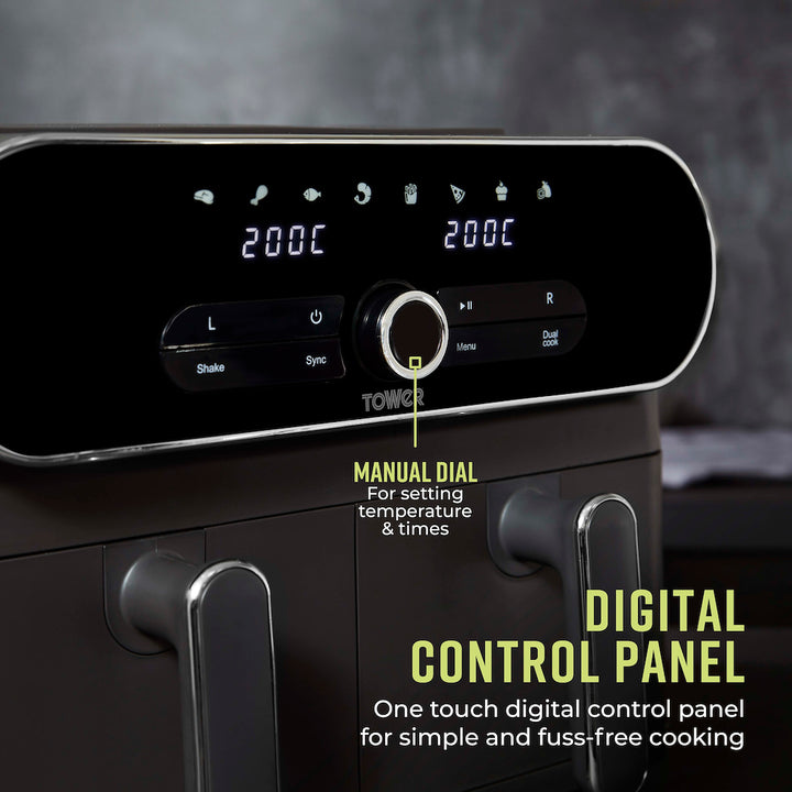 Tower T17138 Vortx Elite 10.4L Dual Basket Air Fryer Digital - Graphite