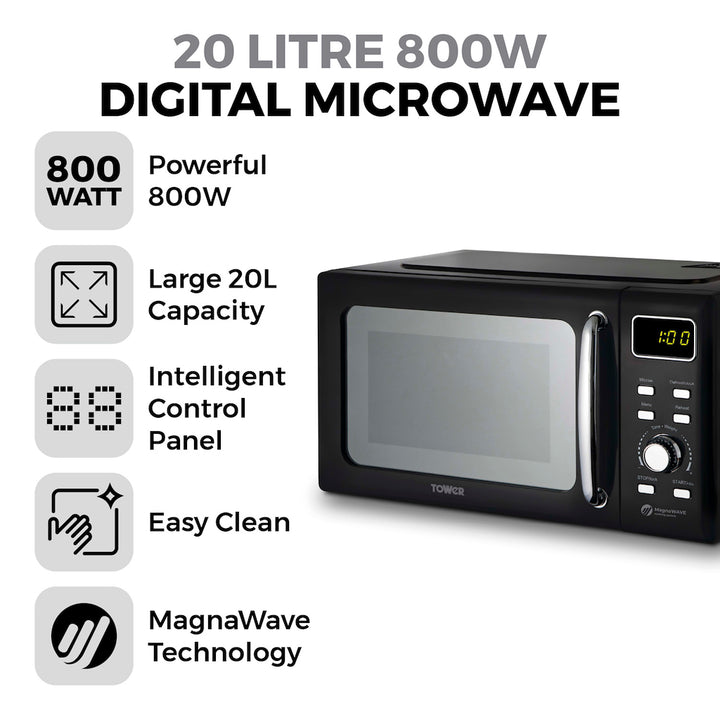 Tower T24041BLK 20L 800W Digital Microwave - Black