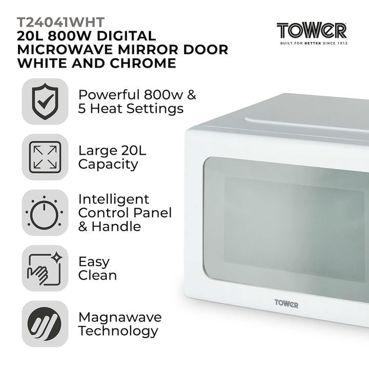 Tower T24041WHT 20L 800W Digital Microwave - White