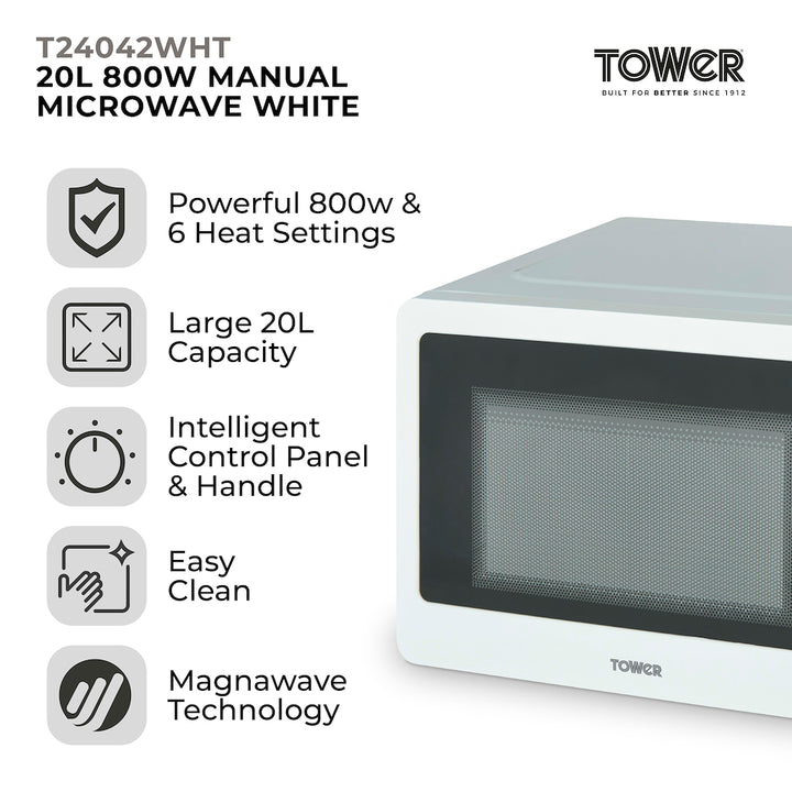 Tower T24042WHT 20L 800W Manual Microwave - White