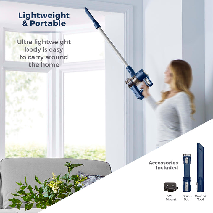 Effortlessly achieve a more efficient and deeper clean around the home with the VL35 Cordless 3-in-1 Pole Vacuum. Its powerful built-in rechargeable battery delivers up to 35 minutes of continuous run time from a single charge for hassle-free cleaning. Use as a cordless vacuum for carpets and hard floors, a detachable handheld for cars, stairs and upholstery or extend the pole for higher hard-to-reach areas like ceilings and curtains. The cyclonic suction provides consistent airflow, effortlessly sucking up and breaking down dirt from all floor types for a thorough clean. This product benefits from an anti-tangle floor head, preventing hair build up around the brush head. It transforms into a handheld vacuum that is perfect for staircases, cars and upholstery. An anti-allergy HEPA filter removes 99.95% of fine particles from 0.3 microns, making it ideal for allergy sufferers. Its ultra lightweight 1.3kg body is easy to carry and move from room to room, for cleaning up high or down low anywhere in the home.