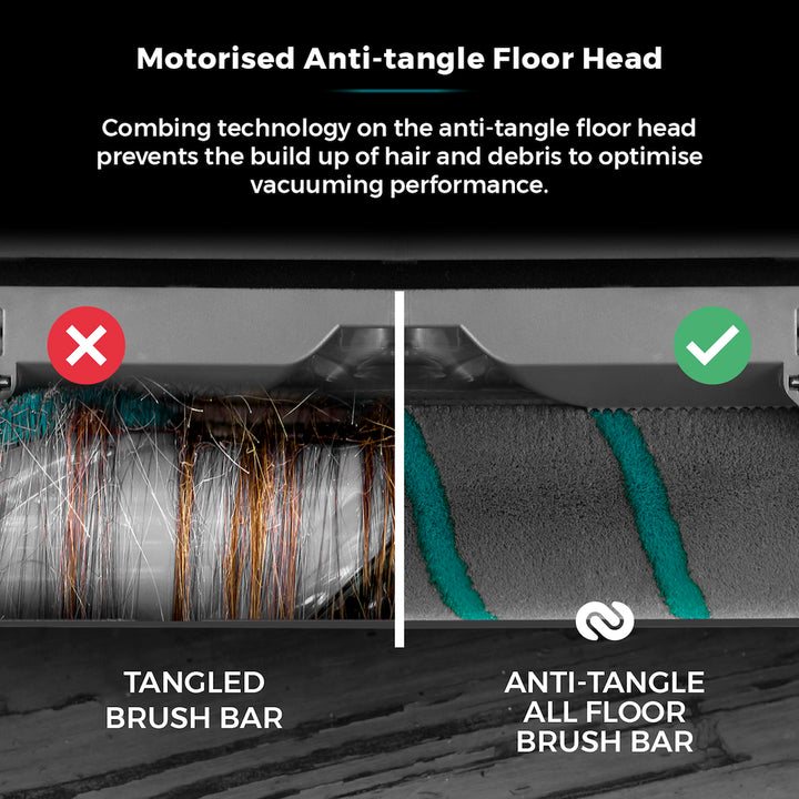 The VL80 is a 29.6V Li-ion DC motored vacuum cleaner boasts a powerful 11kpa suction power with a 75cm flexi pole and a 1L dust tank. This product benefits from an anti-tangle floor head and integrated 3-in-1 all floors brush bar and a touch power mode to adjust your suction power. An F8 Multi cyclonic filter system coupled with a secondary Hepa-13 filter allows for this vacuum to agitate dust no matter how deeply imbedded it is. This vacuum cleaner also comes with your standard crevice tool and upholstery tool accessory. This product benefits from an anti-tangle floor head, preventing hair build up around the brush bar. The vacuum has a lightweight design and good manoeuvrability with up to40 minutes of runtime from a single charge. It also converts into a handheld vacuum that is perfect for staircases, cars and upholstery. An anti-allergy HEPA filter removes 99.95% of fine particles from 0.3 microns, making it ideal for allergy sufferers.
