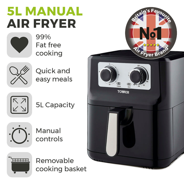 Tower T17090 Vortx 5L Manual Single Basket Air Fryer - Black