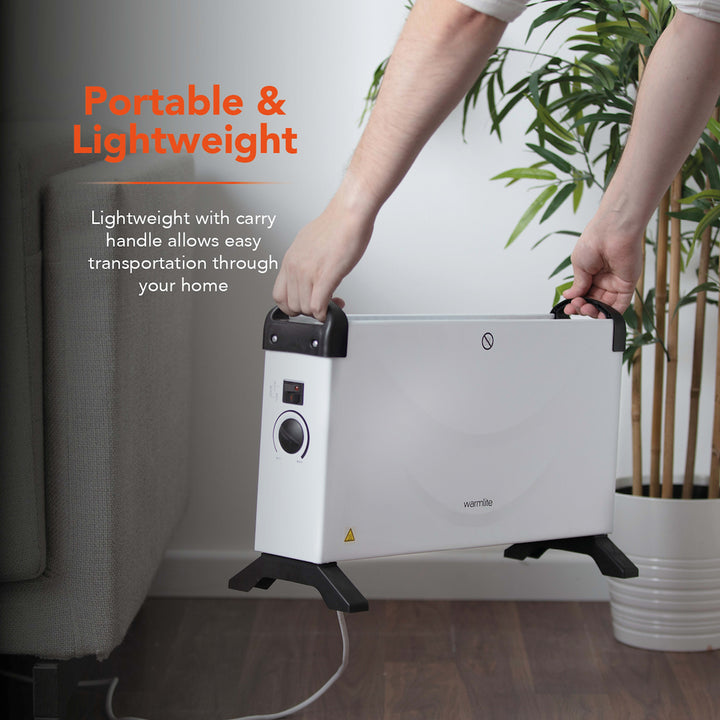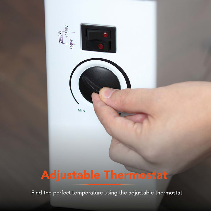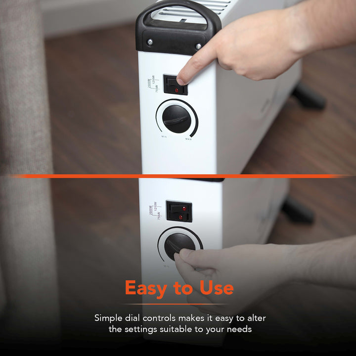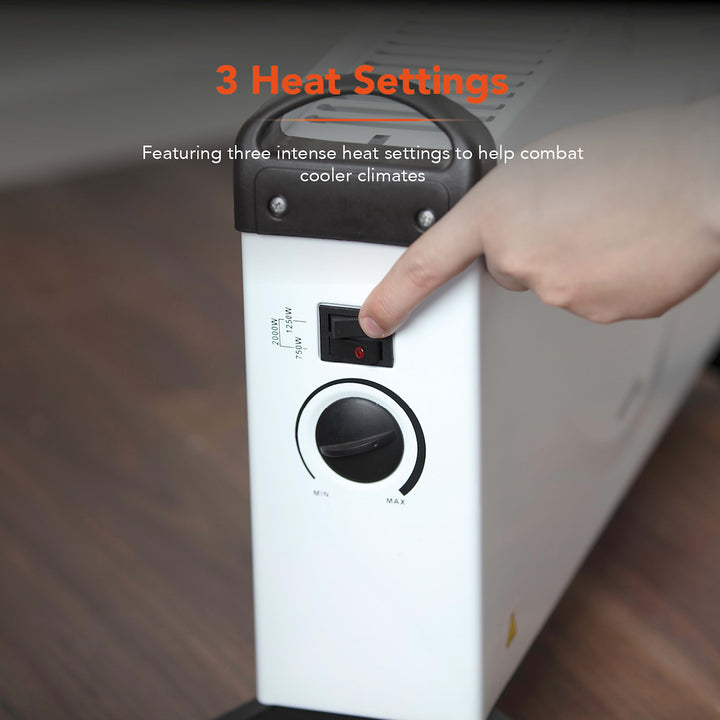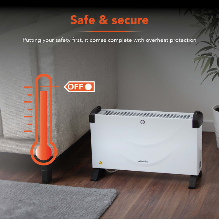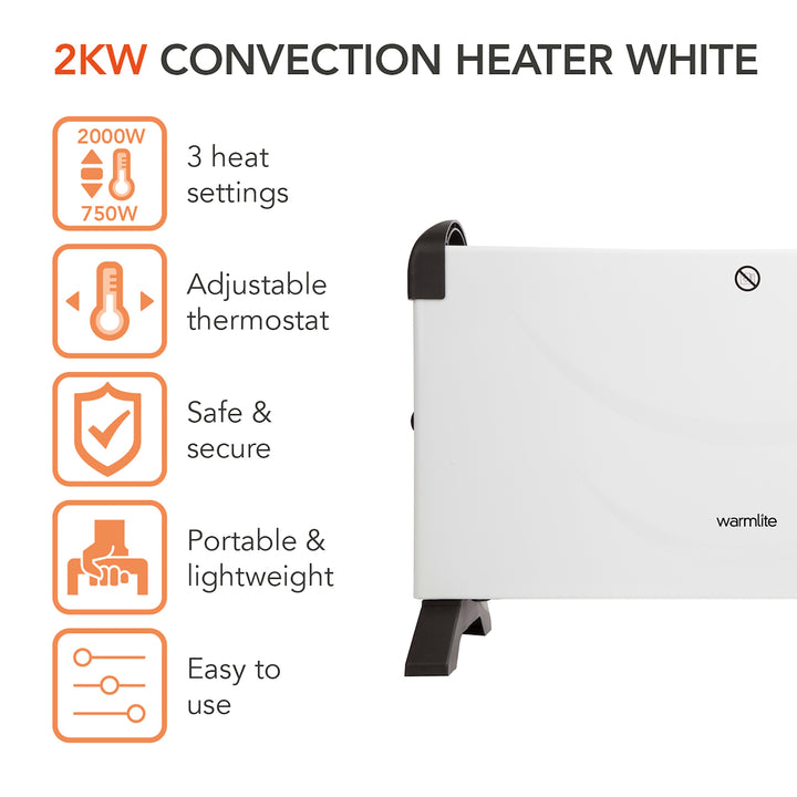 Powerful and compact, this 2000W Convection Heater with its freestanding design is ideal for offices, studies and workshops. Featuring three heat settings (750W, 1250W, and 2000W) and an adjustable thermostat, it offers a range of easily adjustable options, to suit every preference. Overheat protection and thermal cut-off features ensure safety whilst in use, making this heater at once practical and safe to use.