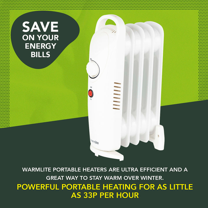 Make your home cosy with warmth using Warmlite's efficient and stylish oil filled radiator. With 5 heated fins and 650W of power, this easy-to-use small radiator has a mighty performance...