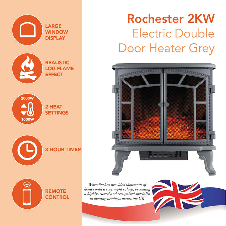 Warmlite WL46020G 2KW Rochester Electric Double Door Fireplace