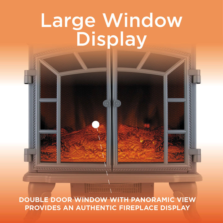 The Electric Double Door Fireplace Heater replicates the look and feel of a warm fire to turn a dark, cold night into a cosy evening lounging in your living room....