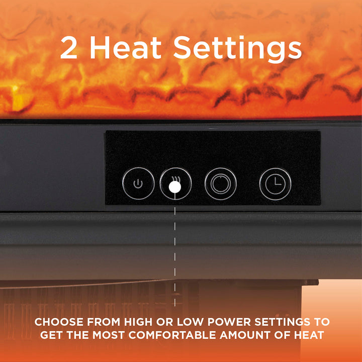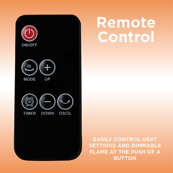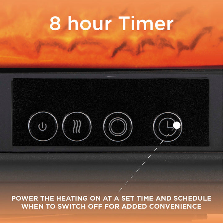 The Electric Double Door Fireplace Heater replicates the look and feel of a warm fire to turn a dark, cold night into a cosy evening lounging in your living room. Its elegant cast iron finish is coupled with a realistic log flame effect to create an authentic, relaxing atmosphere in your home. Open the large panoramic window display to easily control settings, with the ability to dim the LED flame effect to set the ideal mood. It features a choice of two heat settings to warm up your room in a matter of minutes, with an 8 hour timer function to pre-set the heater to power on or shut off at a time that suits. A remote control is included to conveniently adjust settings from the comfort of your sofa. The Electric Double Door Fireplace Heater offers a stylish heating solution without sacrificing ambience.
