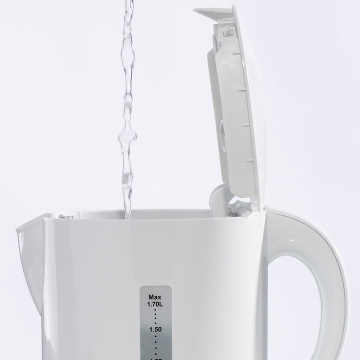 This lightweight plastic Daewoo electric kettle features a cordless design making easier to use comfortably, and perfect for left and right handers. It also features a 2200W element for rapid boil, and a removable limescale filter for clean, clear water, with an LED indicator to show when the water is boiling.