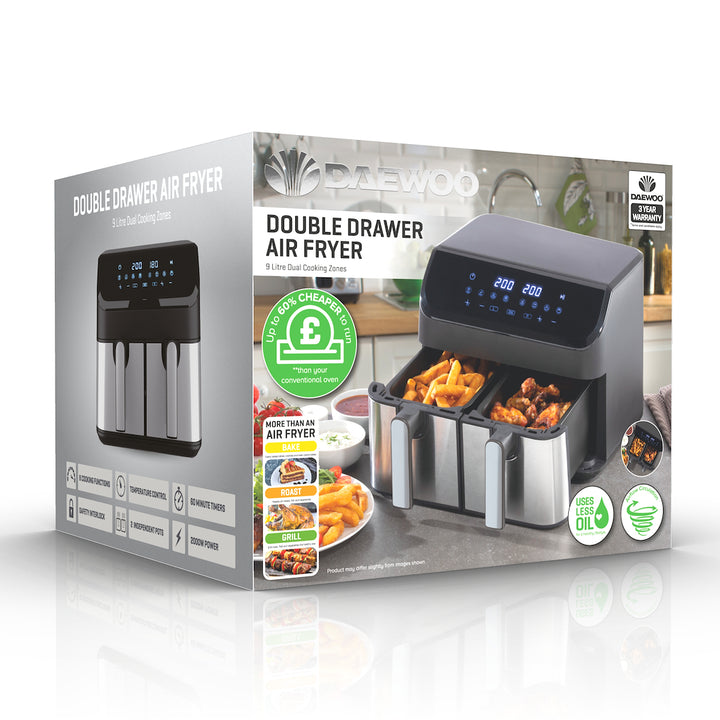 Daewoo SDA2616GE xl 9L Digital Double Drawer Air Fryer